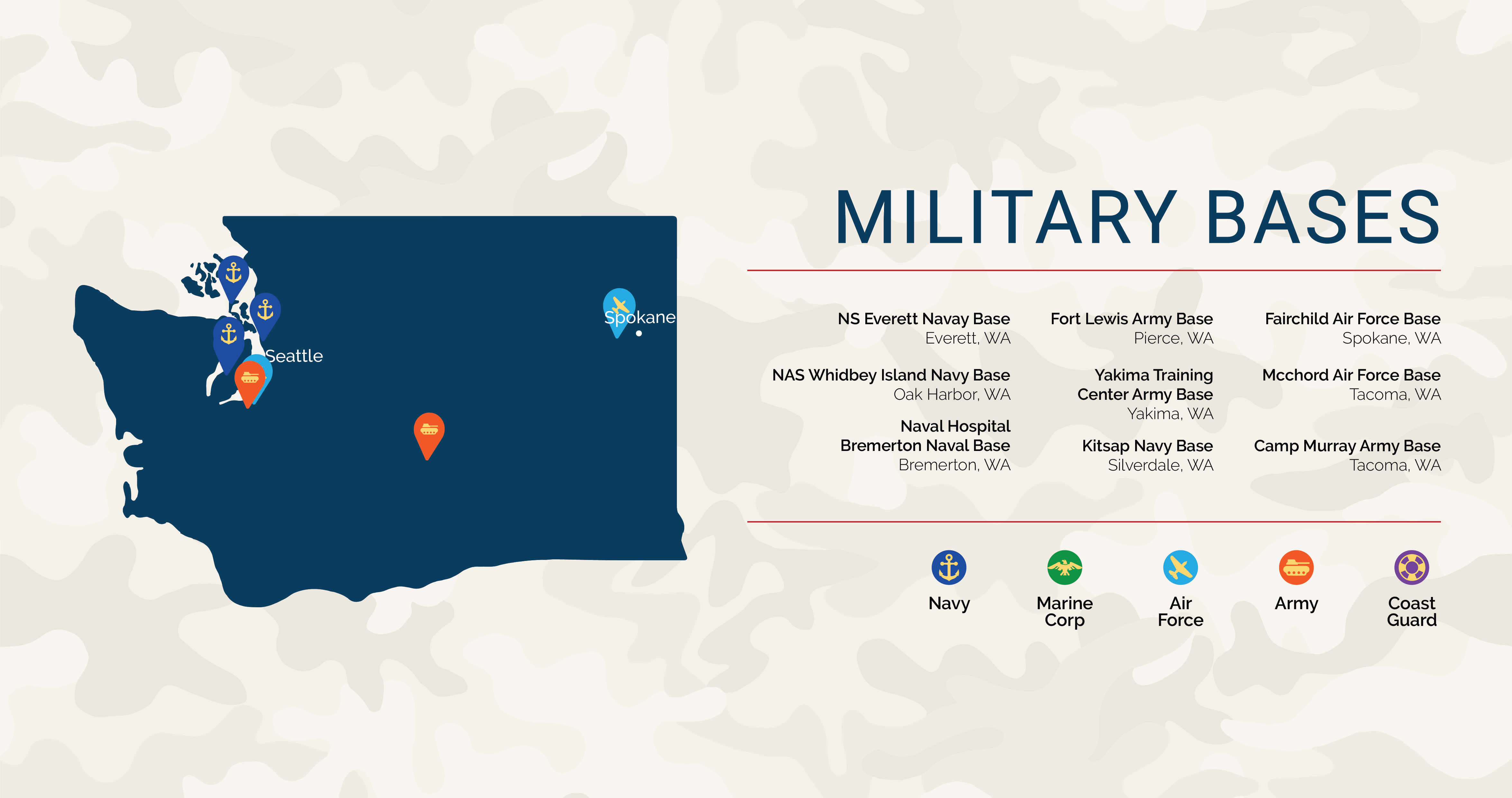 If you're a member of the Air Force, Army, Navy, or Coast Guard who is stationed in Washington, you may qualify for a VA home loan near one of the military bases in Washington.
